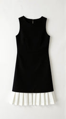 The 'Celine' dress is monochrome magic at its finest. This sleeveless number commands attention with its fitted bodice and playful contrast pleated hem. The classic black-and-white combo means business up top, while the flirty white pleats add that perfect dose of fun to your stride.