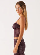 A chic blend of vintage charm and modern elegance, the Delilah Polka Set is the perfect addition to your wardrobe. With its playful polka dot design and flattering high-low silhouette, this set radiates feminine charm. The ruched, strapless top pairs beautifully with the flowy skirt, creating a look that’s both flattering and comfortable for any occasion.