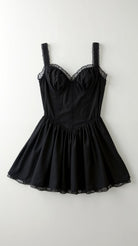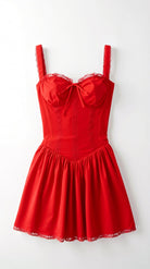The 'Delphina' dress is sweet seduction perfected. This enchanting mini features a bustier-style bodice with delicate lace trim and a dainty tie detail. The gathered bust flows into a playful skirt with a hidden tulle layer, while the feminine straps add that perfect touch of romance.