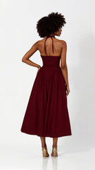 Command attention with the Ianthe Midi Dress, a flawless fusion of daring elegance and minimal design. Featuring a dramatic halter neckline and a voluminous A-line skirt, this dress celebrates the feminine silhouette with understated sophistication. Crafted in classic black, the Ianthe is your go-to piece for cocktail events, date nights, or elevated everyday moments.