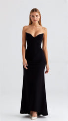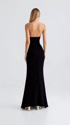 The 'Melisande' gown is pure red carpet drama. This stunning fishtail dress features an architectural sweetheart neckline and bustier-style bodice that creates the ultimate hourglass silhouette. The premium stretch fabric sculpts and smooths while the expertly cut skirt flows into a graceful sweep.