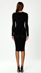 The 'Seraphine' glitter midi dress is pure elegance with attitude. Crafted from our signature stretch fabric infused with delicate shimmer, this figure-sculpting silhouette works overtime to keep you looking flawless. The classic crew neck and long sleeves create a sophisticated canvas for the dress's show-stopping sparkle effect.