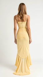 - Soft Yellow Hue: The soft yellow color of the dress exudes freshness and warmth, offering a sunshine vibe that brightens up any event.