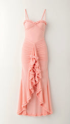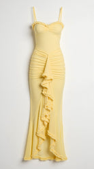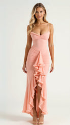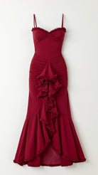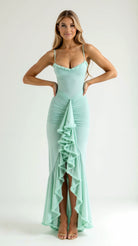 Embrace elegance and sophistication with the Wisteria Gown Maxi Dress, a dreamy and romantic piece designed to make you feel like the star of any occasion. This stunning gown features soft, delicate ruching and is finished with playful, frilly lace detailing that adds a dash of flair to its graceful silhouette. The luxurious fabric and flattering cut will ensure you feel confident and chic at every step.